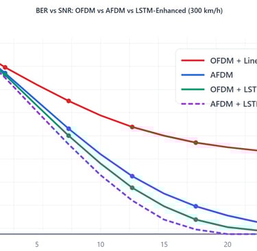 (Yin & Tang, 2022) and 2×2 MIMO comparison of NR-PUSCH-OFDM, AFDM, and LSTM.